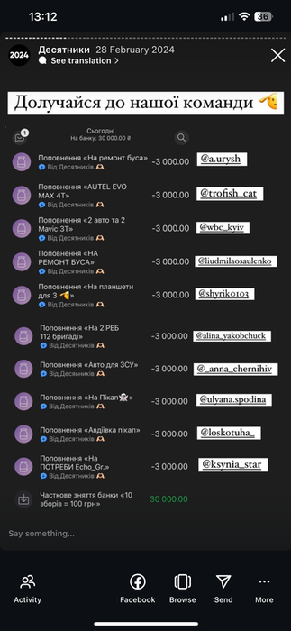 Підпишись на телеграм канал @DESYATNUKU та слідкуй за інформацією про поточні збори.